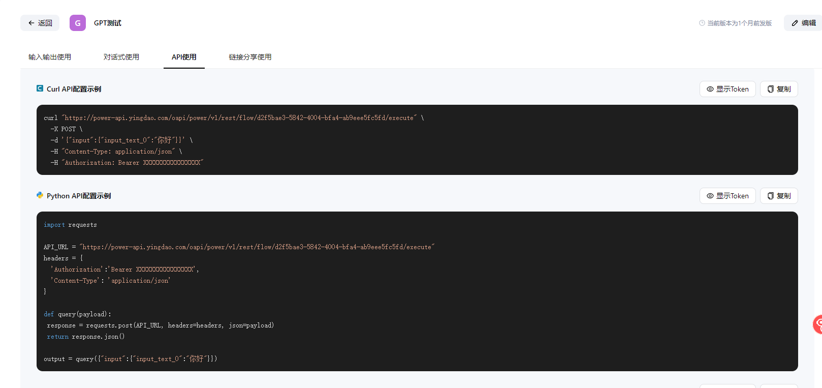 以上的分享方式链接一旦泄露出去,有被盗刷GPT服务的风险,那么有没有一种更加安全的方式使用AP呢,这里我们推荐使用api,可以把调用方式写入到后端代码。