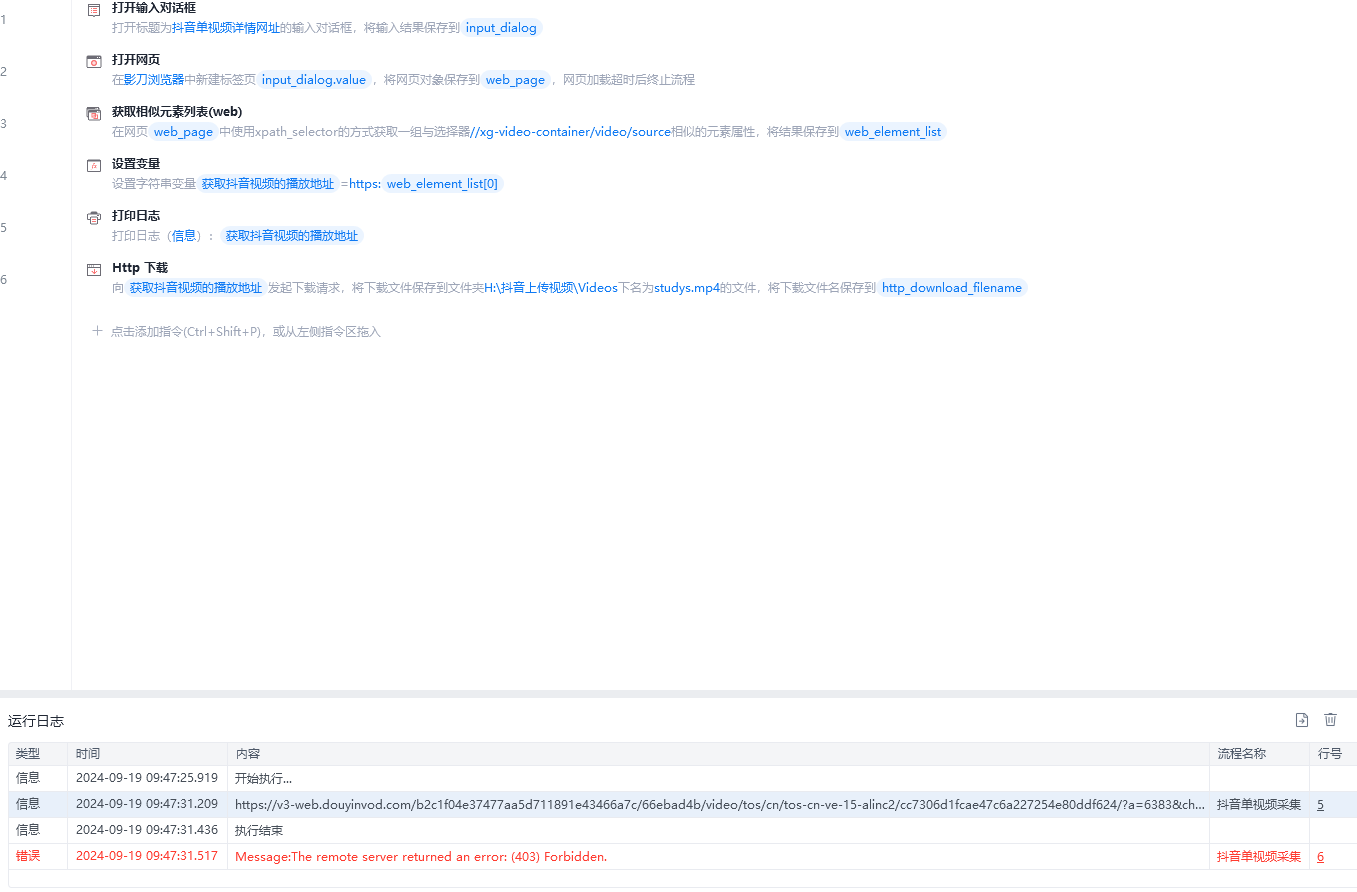 视频下载链接获取是正确的,可以在浏览器中打开,就是不能下载视频到本地报以下错误: