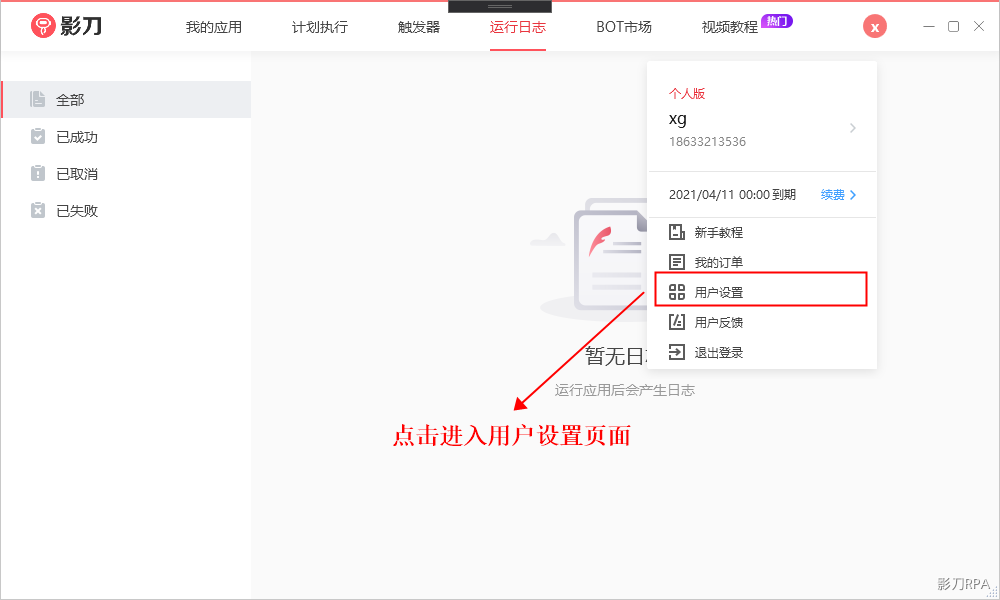 进入【用户设置】界面