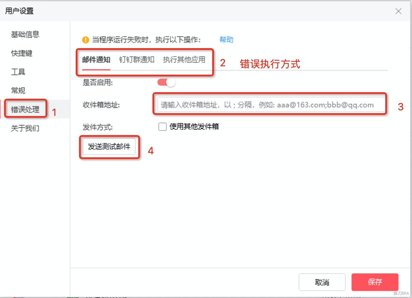 进入【错误处理】配置界面