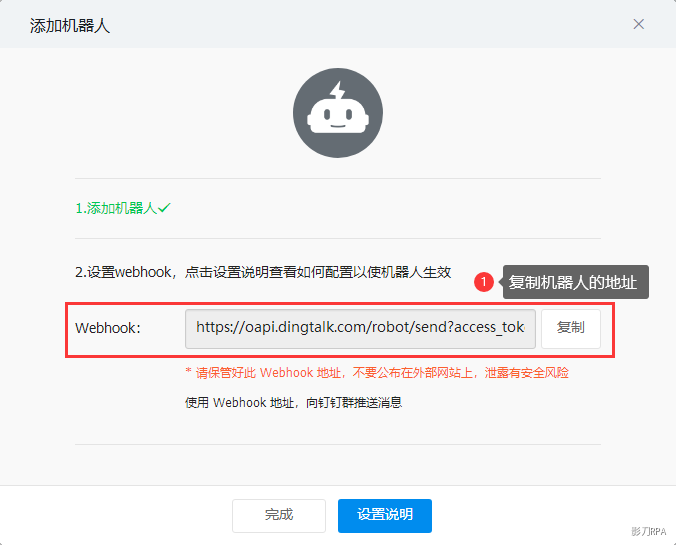 Webhook地址:钉钉