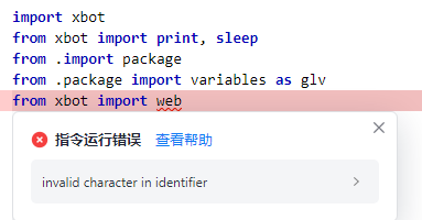 invalid character in identifier