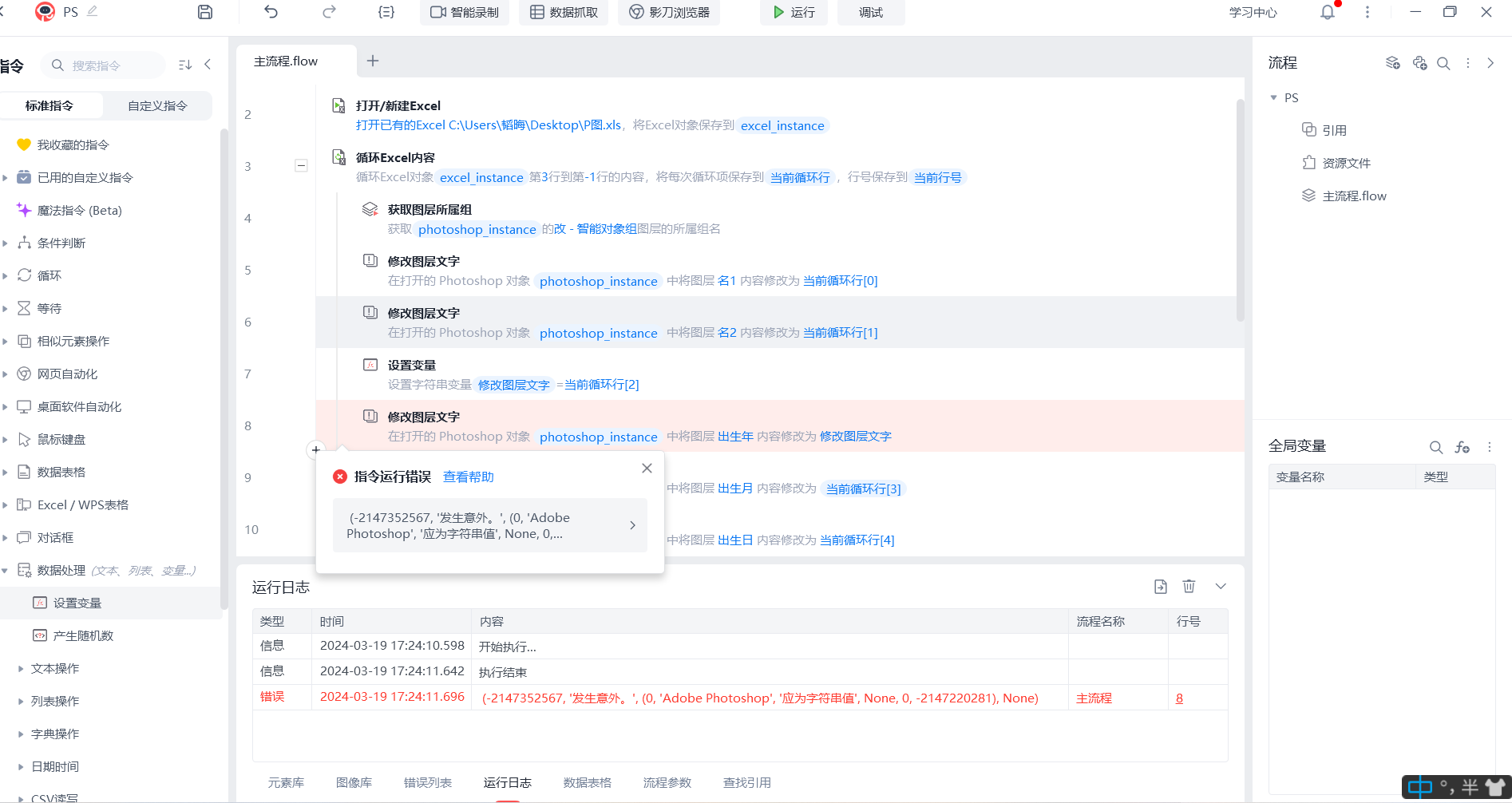 使用PS修改图层出错,设置了字符串变量,还是没用