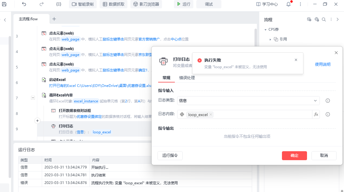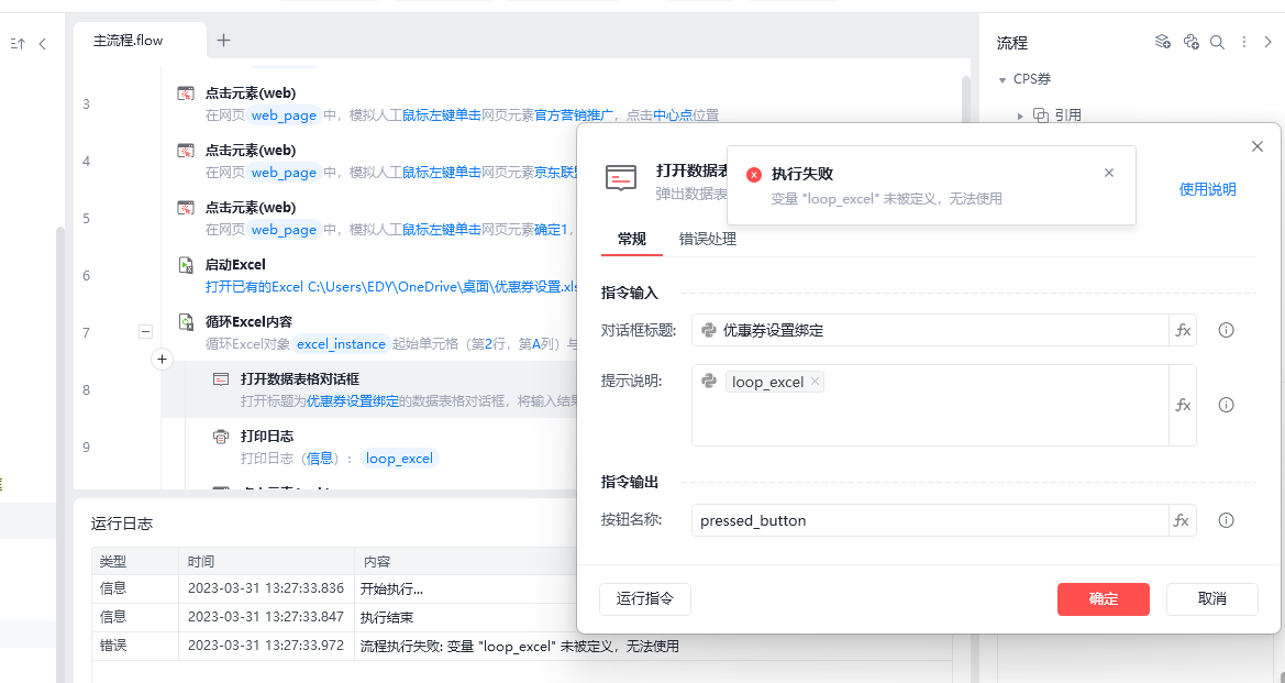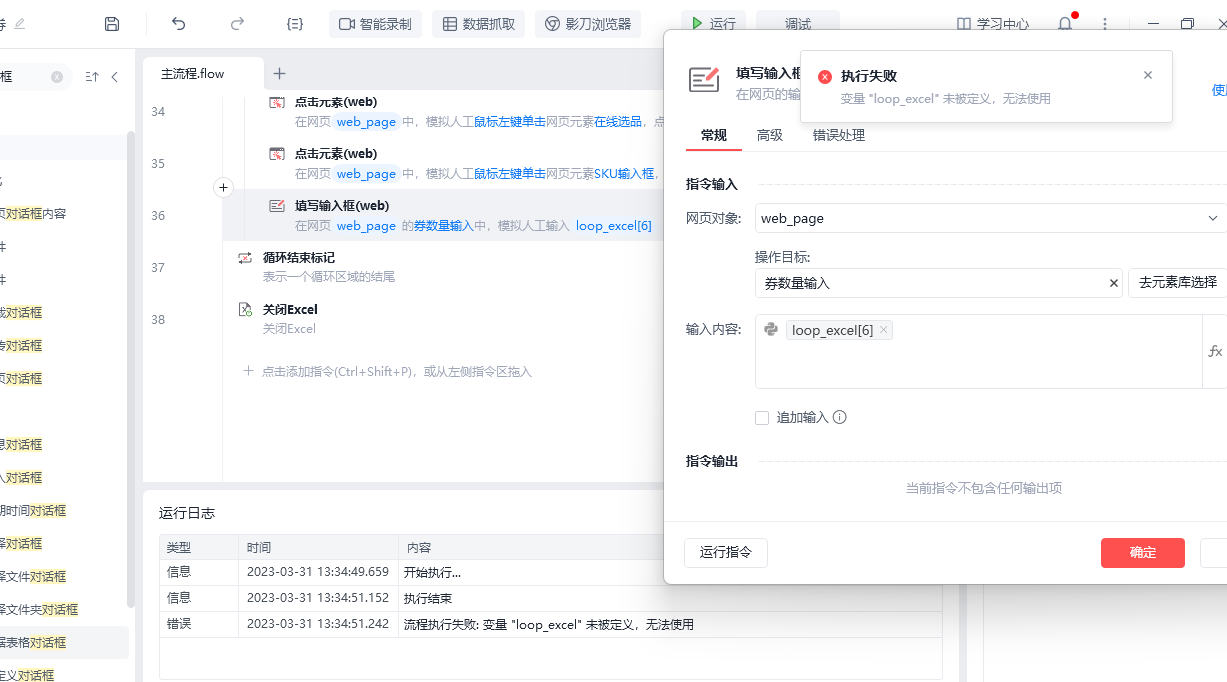执行失败: 变量 "loop_excel" 未被定义,无法使用