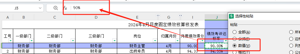 WPS复制数据粘贴为值