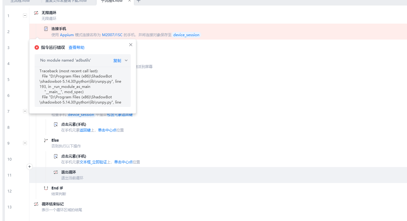 No module named 'adbutils' 复制手机程序指令到PC端运行,提示错误