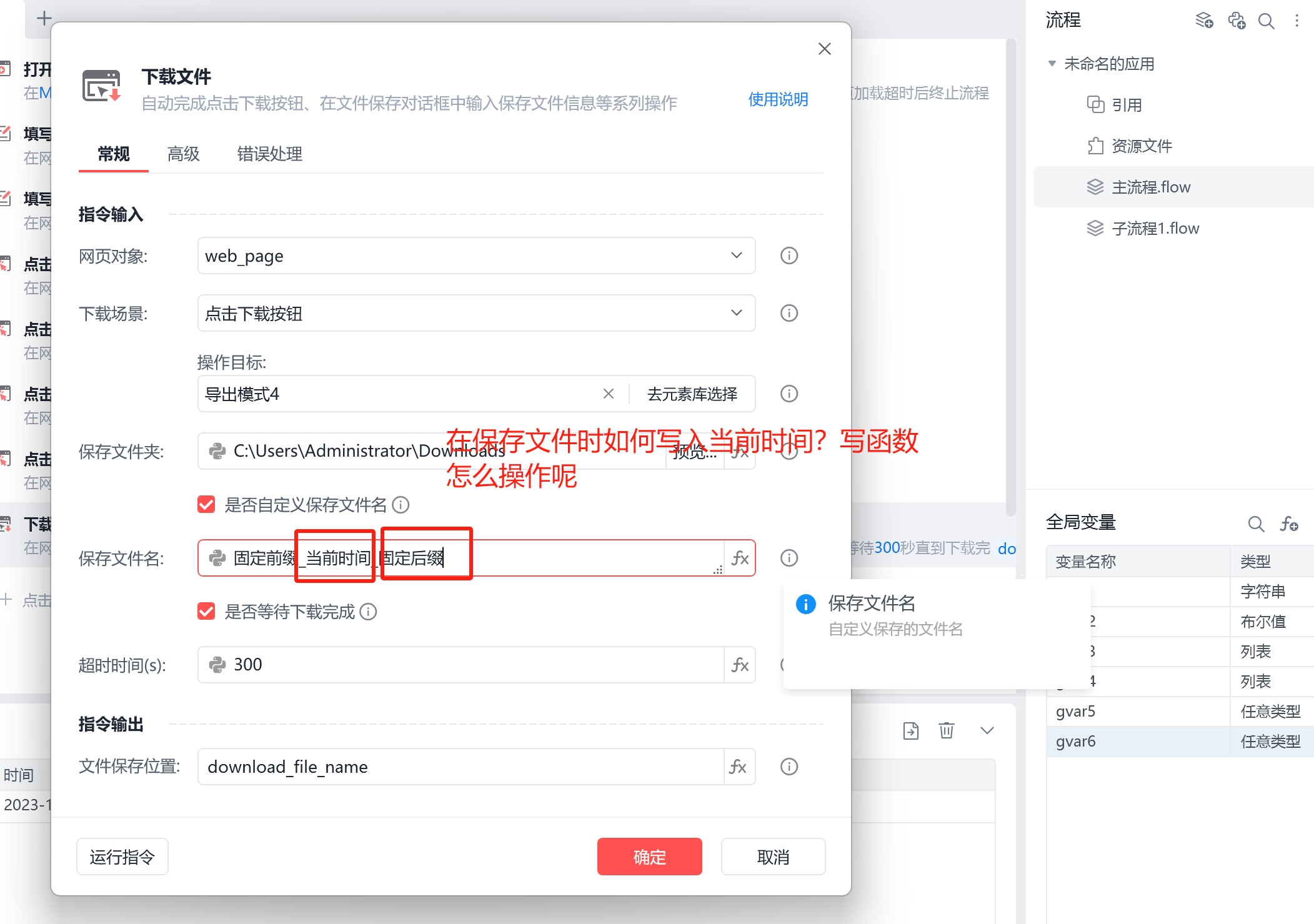下载文件时,对文件重命名并写下当前时间如“20231117", 实现?
