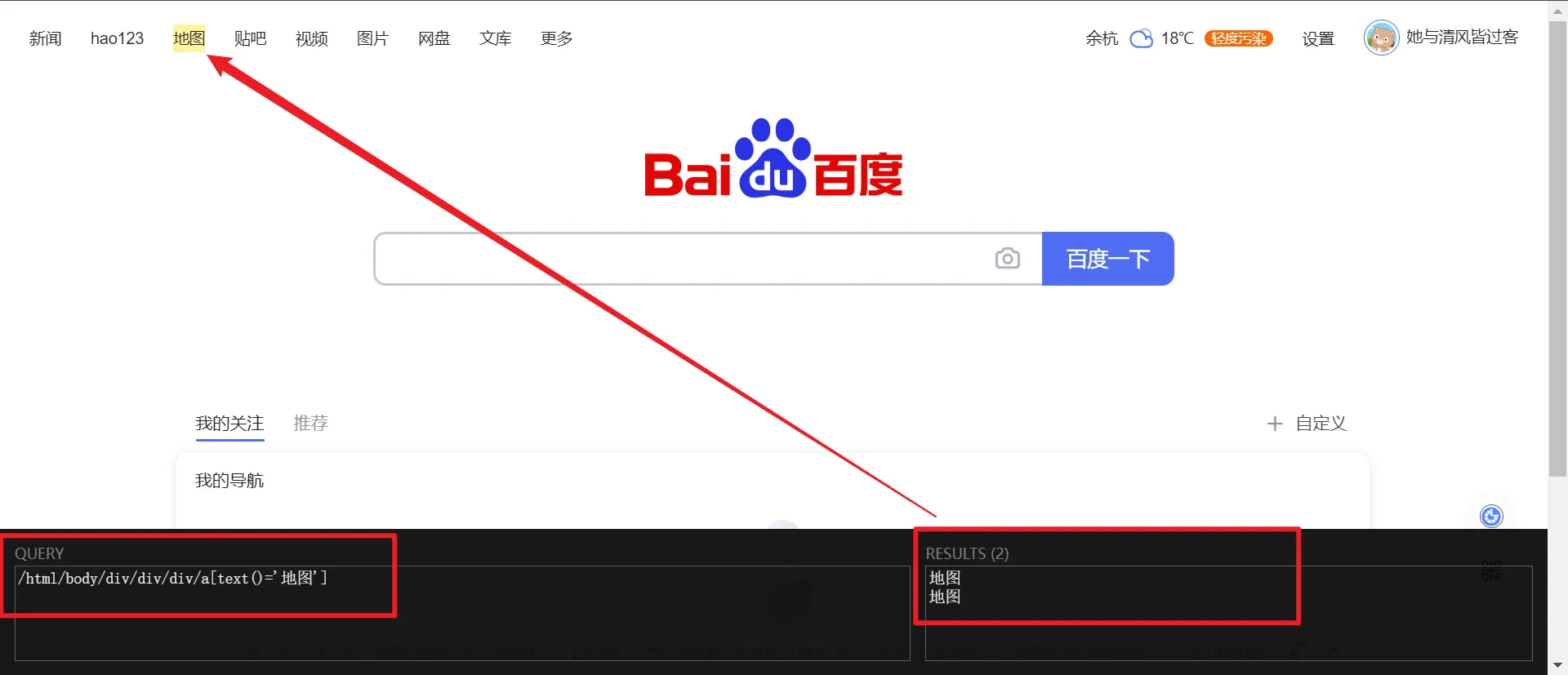 以下列举了一些定位百度首页中定位“地图”元素的XPath表达式: