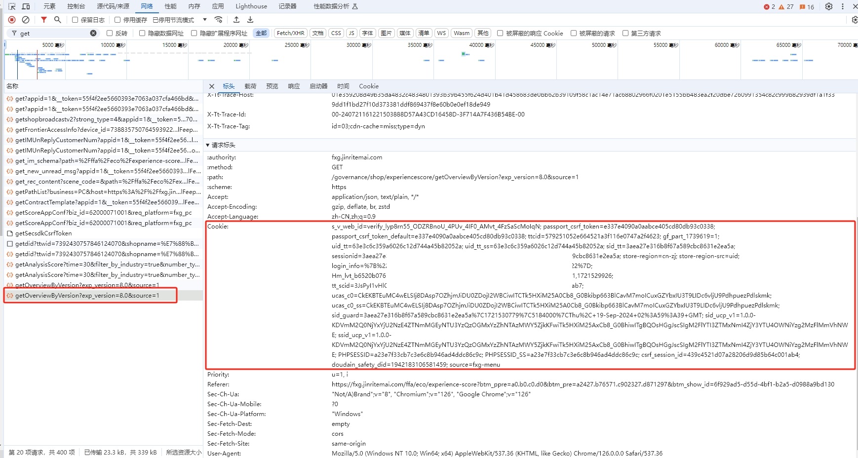 如何用影刀提取网页右边红框中的cookie信息?