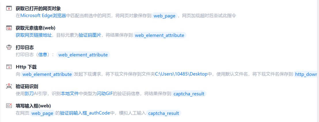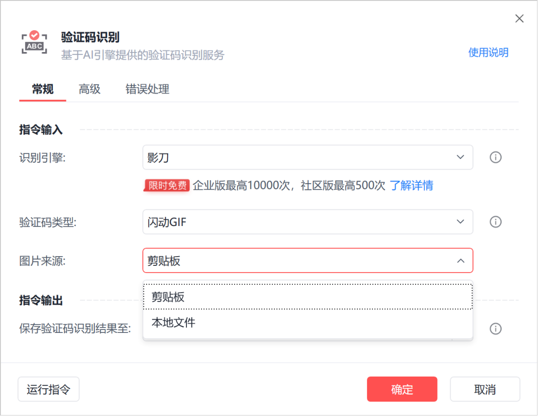影刀提供的验证码识别指令,对于闪动GIF这类验证码,也仅提供“剪贴板”和“本地文件”两种图片来源,无法直接选择网页元素。