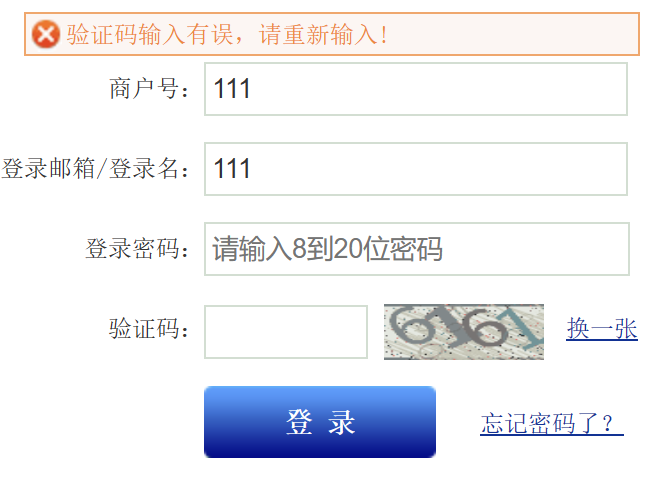 此时提示变成了账号、密码有误,说明验证码已经通过了。