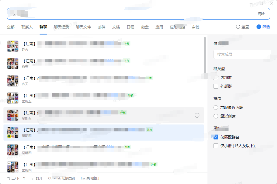 企业微信群通过筛选关键词后筛选到的群聊用获取相似元素组,无法获取到,打印出来是空列表,用点击图像的方法,顺序也是乱点的,想实现筛选出来的群聊批量拉人进去,而且筛选页面仅匹配群名,无法通过设置复选框勾选