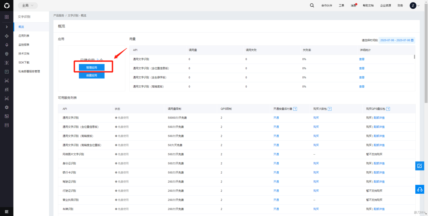 打开百度OCR管理后台: