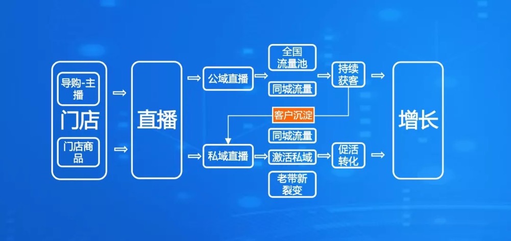 直接以实体门店为中心,一店一直播间,配套快速搭建,打通店铺场景-顾客流量-购物转化这条线。