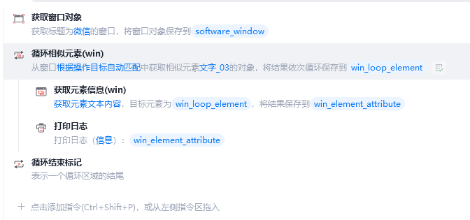 采集列表名称,用循环相似元素获取元素信息,但只能获取到当前显示的内容,如何能够获取完整的微信聊天列表信息。