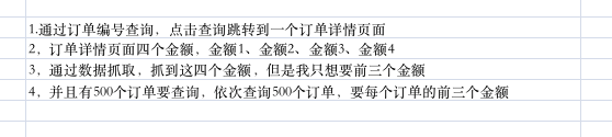 怎么循环查询500个订单,拿到每一个订单的前三个金额