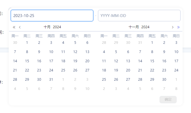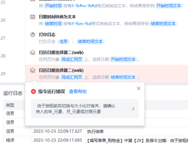 我是用的2个日历日期选择器二,设置了两个时间2023-10-25和2024-01-05,第一个本月的选择成功了,但是2024-01-05失败了,报错下面这个