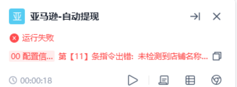 亚马逊主动提现:按照指引全部设置完成(已经在紫鸟上安装影刀插件,并分配账号,也在影刀自动化插件中添加紫鸟浏览器 ),点击执行,提示报错 (未检测到店铺名称文件,请检查路径)