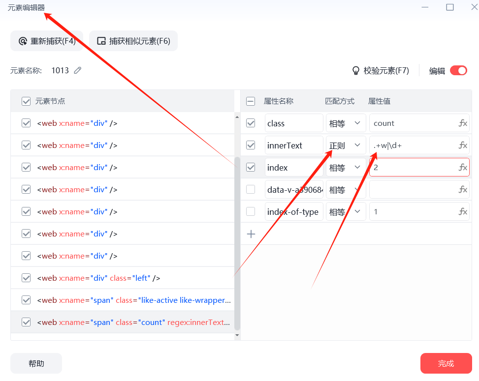 元素编辑器里面可以用正则表达式 如下图 想问下社区各位大佬 在编写xpath的时候 可以把xpath和正则表达式结合达成下图的效果吗