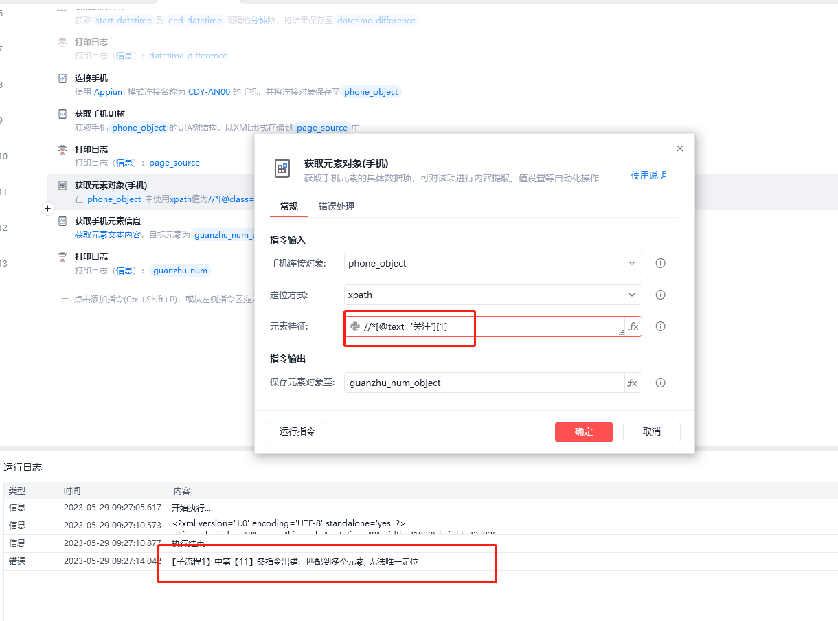以xpath定位,//*[@text='关注'][1],只取第一个元素节点,为什么依然报错,匹配到多个元素,无法唯一定位呢