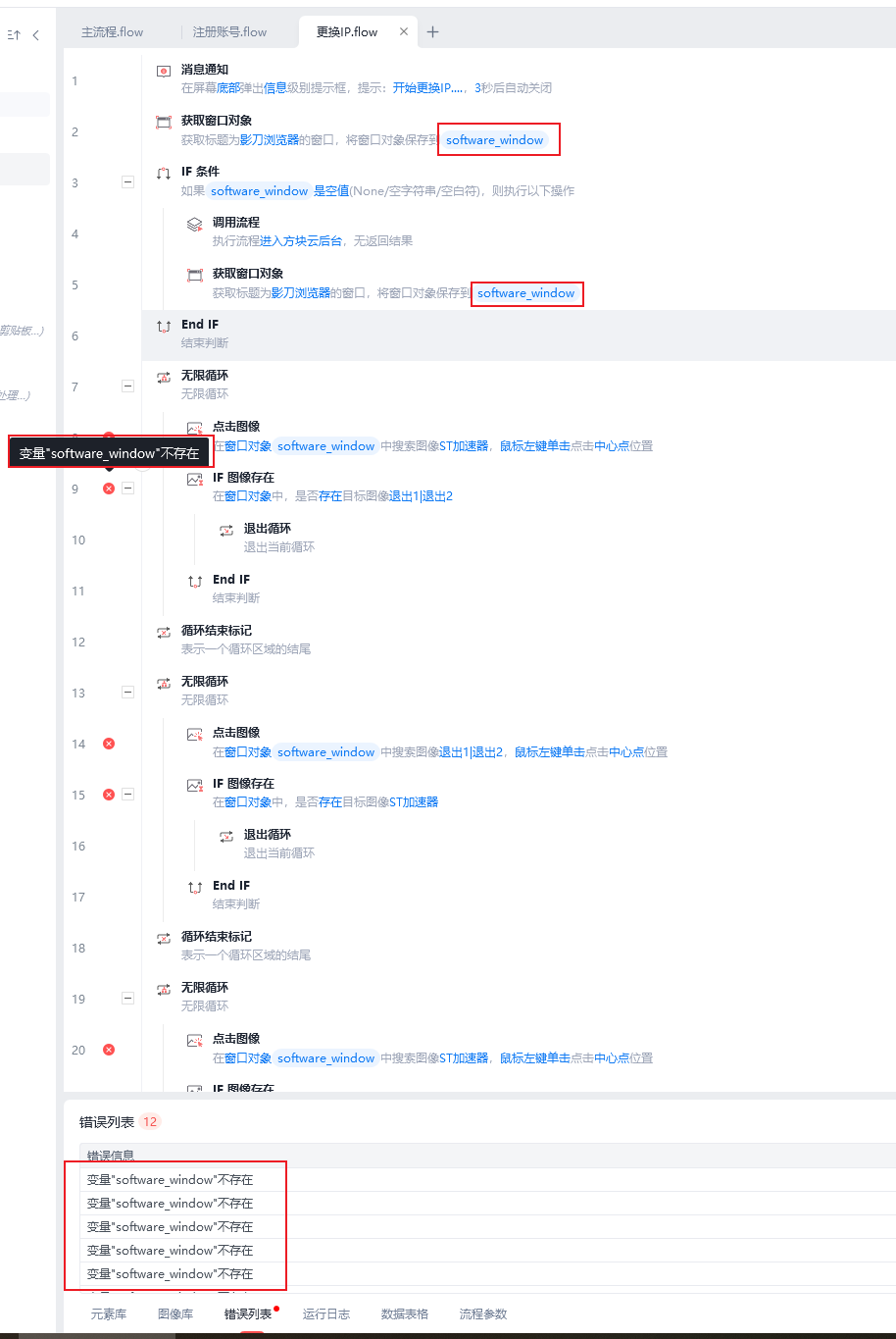 我只要一加IF条件,它就无脑提示窗口变量不存在,但是我的逻辑没有问题,并且也能跑通,这是影刀检查错误的BUG吧?