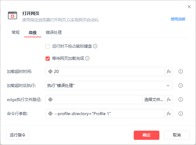 当Edge浏览器没启动时,运行上面指令能正确以Profile 1身份启动浏览器,并打开对应见面