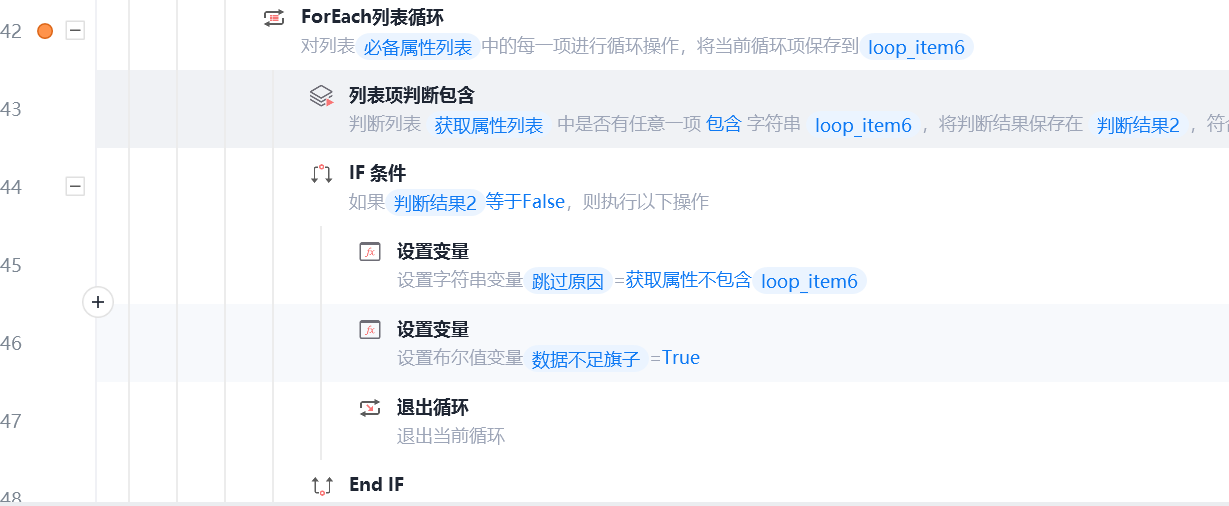 忘记补充一个前提了,我是有一个判断列表['Category','Color','Material','Packaging','Item Weight','Shipping Dimensions','Size','Shipping Estimate'],然后原先的流程是for each循环判断列表,在里边去判断,如果要嵌套一个for each应该怎么做?
