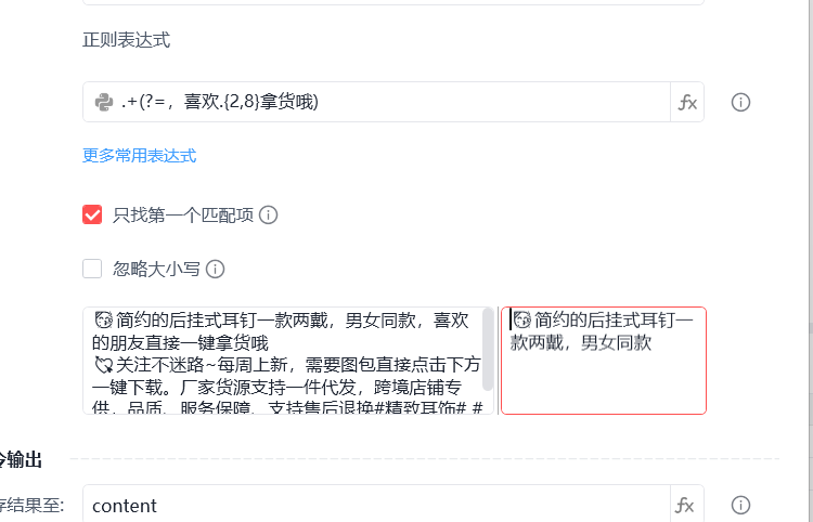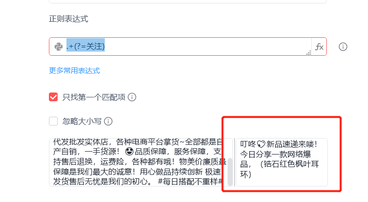 问题是这样的怎么通过一句正则表达式获取以上任意一个文案的前面的内容 ?