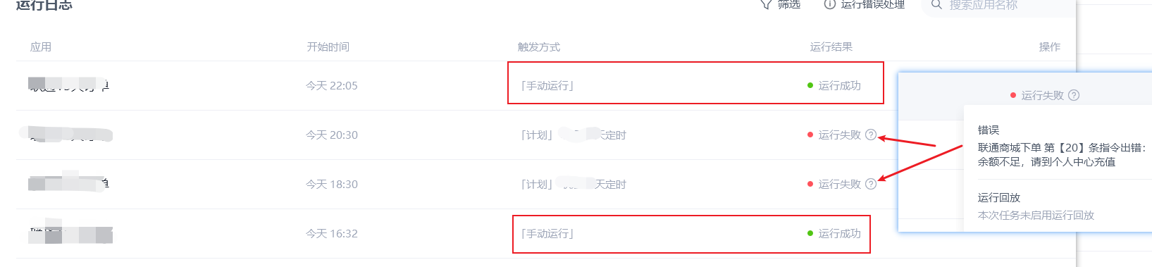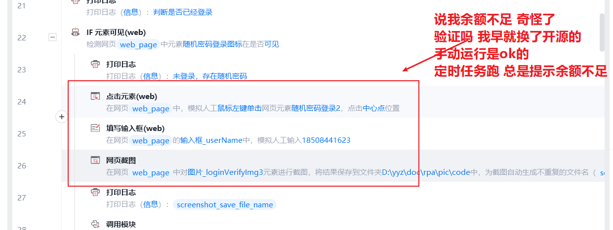 同样的流程代码为啥 手动执行没问题 定时任务执行就报错 说余额不足 没有收费的呀