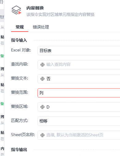使用‘内容替换’组件,但是执行过程中将空值替换为否,系统会报错卡住。同时还不能指定区域,只能选择一列。