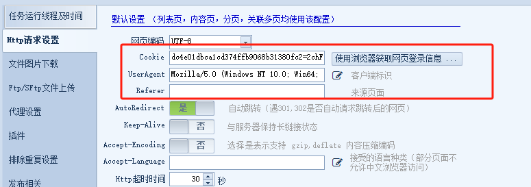 这是我使用另外一款软件,cookie设置很简单,直接复制请求标头的cookie信息。填入即可。