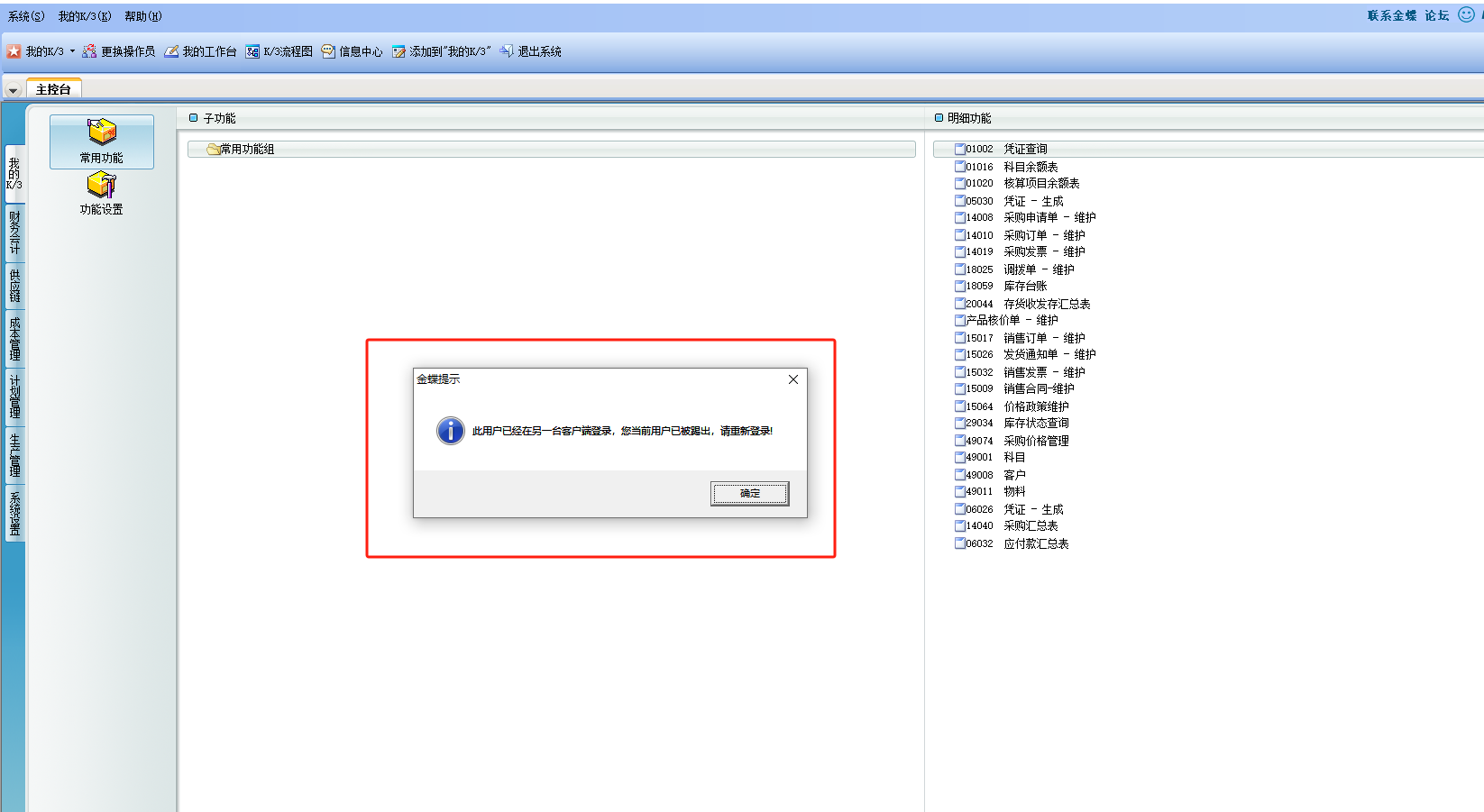 因为我们的金蝶K3账号是多人共用的,在实际操作过程中会不间断弹出该窗口,如果出现该窗口,则无法继续下一步操作。我一般是在每条流程后面增加一个IF判断,如果存在该元素,则点击“确定”,这样虽然能解决,但是会使流程变得臃肿,请教一下大神们,有没什么更好的办法,一旦弹出,自动关闭该窗口