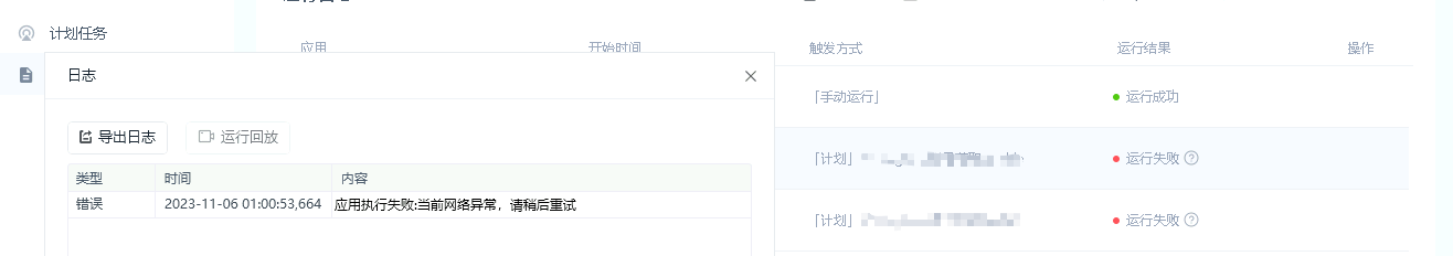 应用执行失败:当前网络异常,请稍后重试