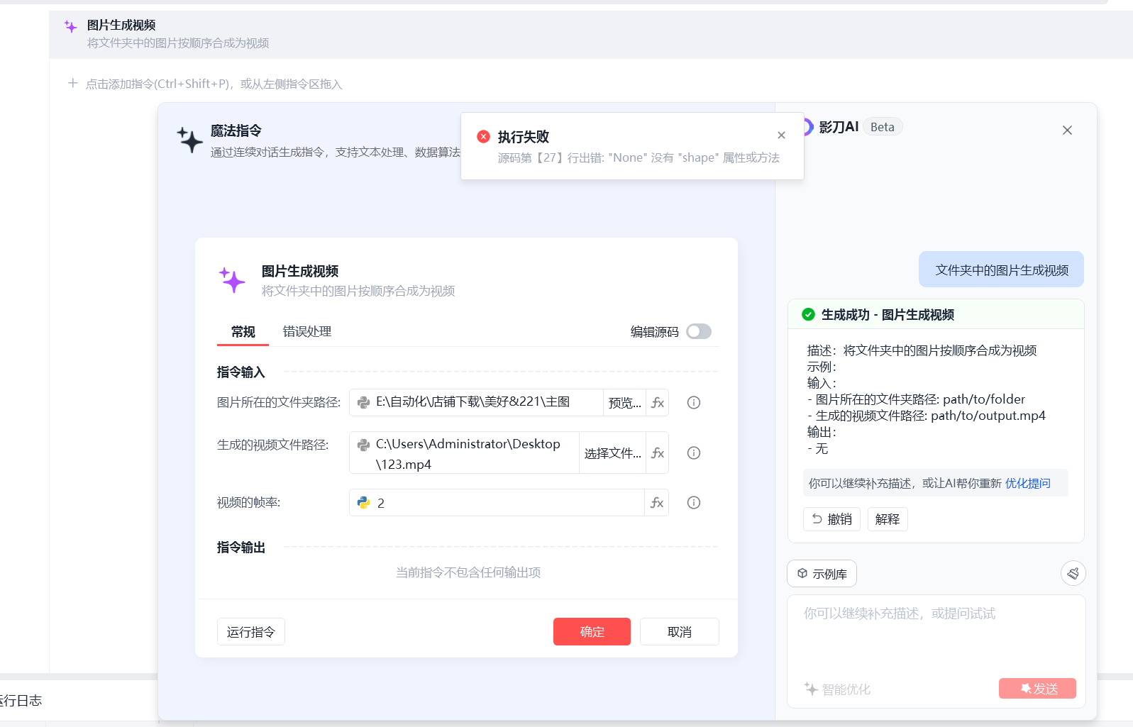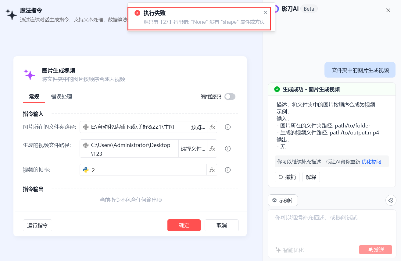 使用魔法指令,出错是哪里出了问题,想把文件夹图片变成视频。