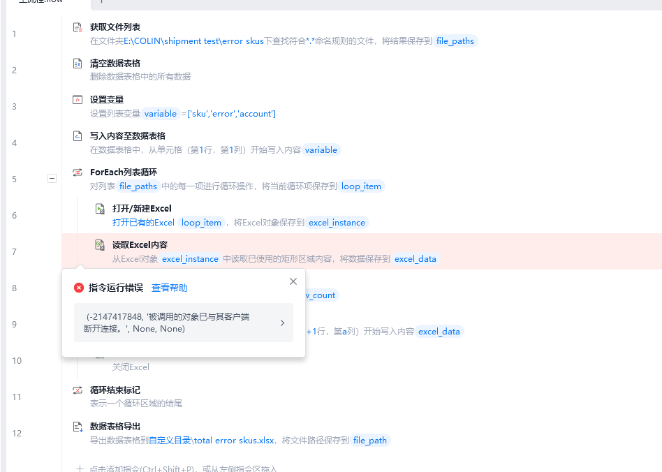 (-2147417848, '被调用的对象已与其客户端断开连接。', None, None)