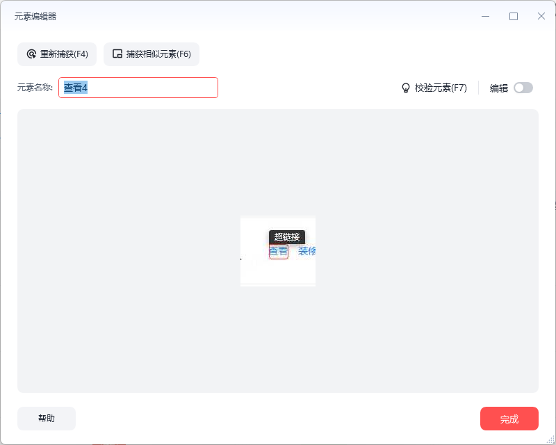 我希望捕获这个页面“查看”的所有相似元素,但是点了捕获相似元素后,只捕获到了一个,而下面的没有捕获成功,这是为啥呀,求大佬指点一下